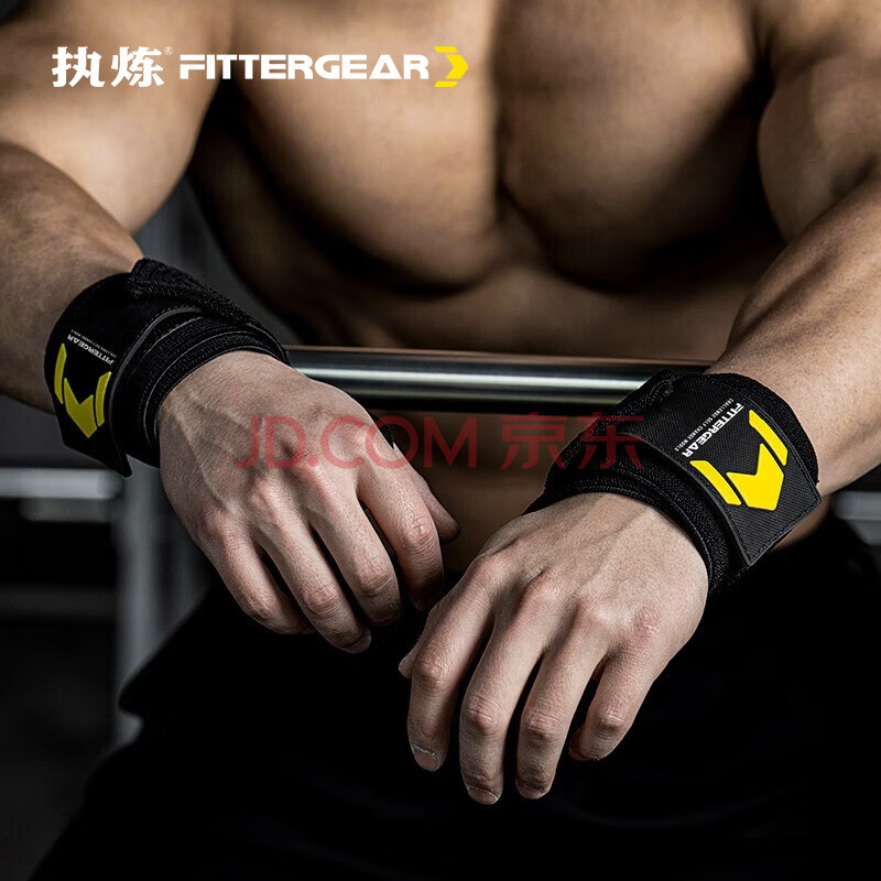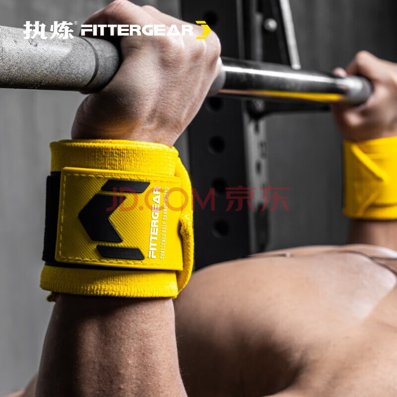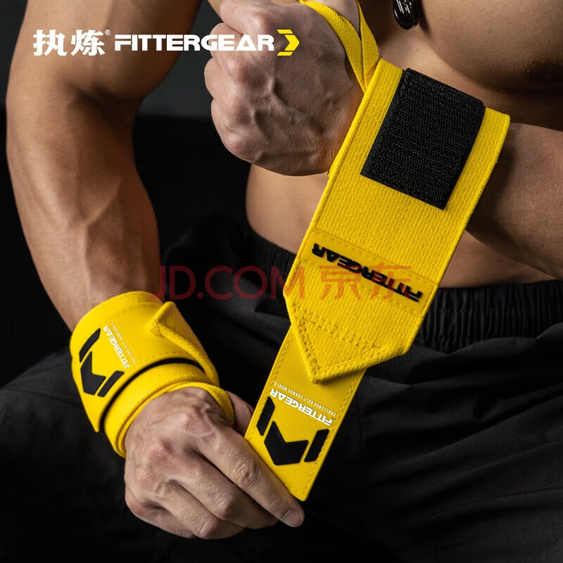 商品相册:FITTERGEAR执炼健身护腕男卧推护手腕举重力量训练防扭伤运动绷带 黄色一对第