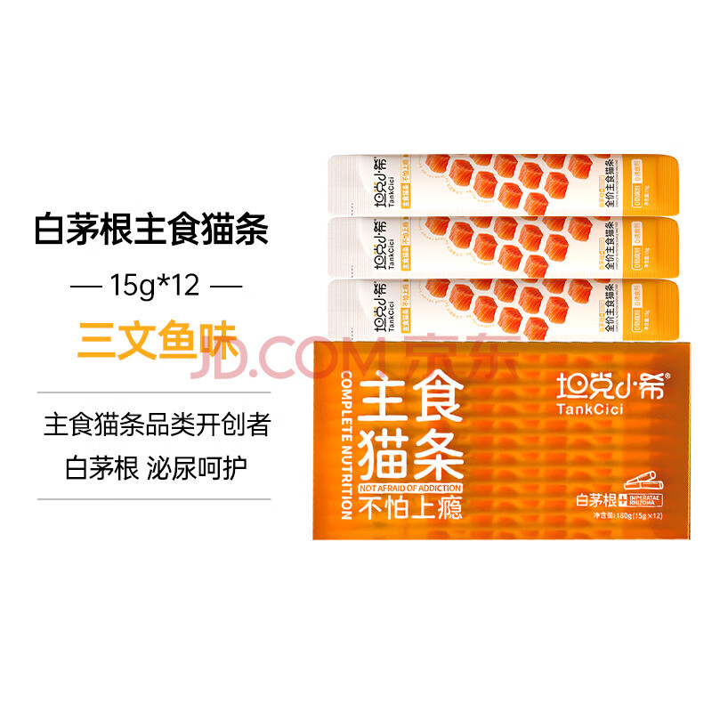 商品相册:坦克小希主食猫条全价营养白茅根呵护泌尿鲜肉罐头猫湿粮三文鱼味15g*12支第