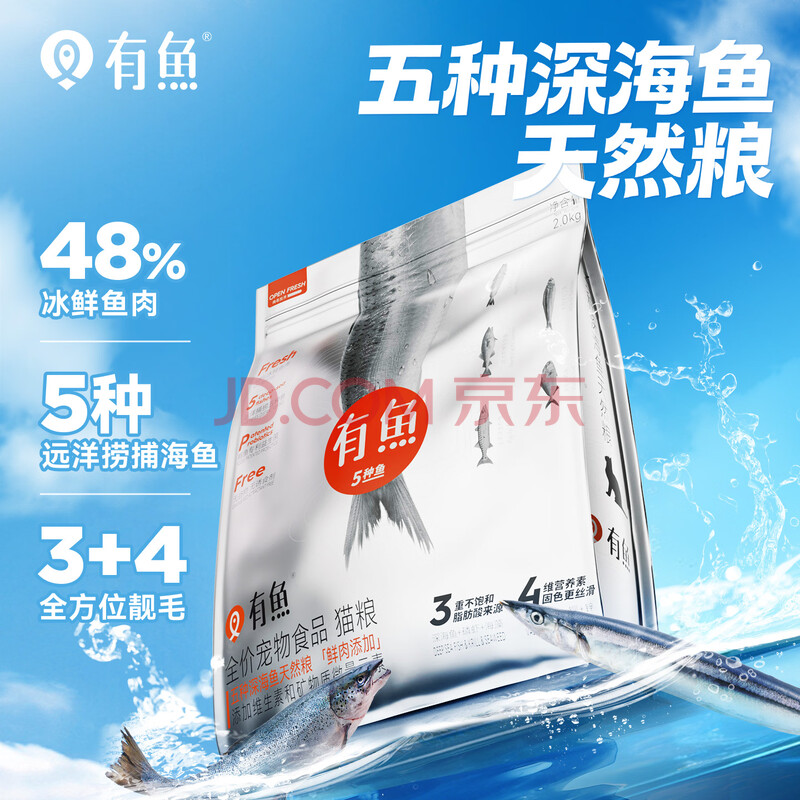 商品相册:有鱼五种深海鱼美毛靓发全价无谷猫粮2kg第