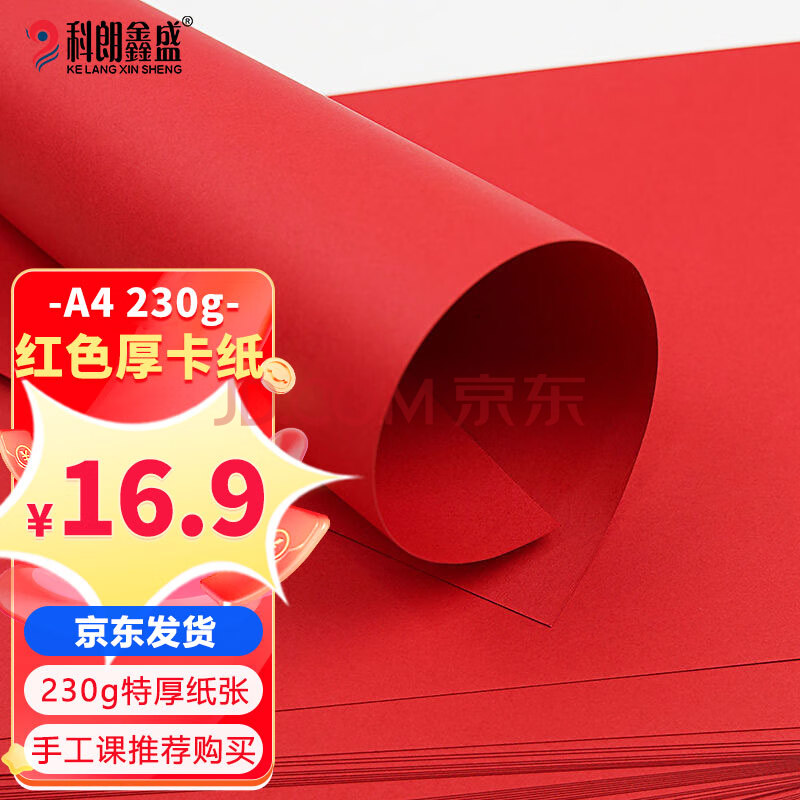商品相册:科朗鑫盛彩纸手工纸折剪纸加厚硬卡纸a4幼儿园学生diy手撕纸封面桌签座位卡片纸A4彩卡230g 大红50张第
