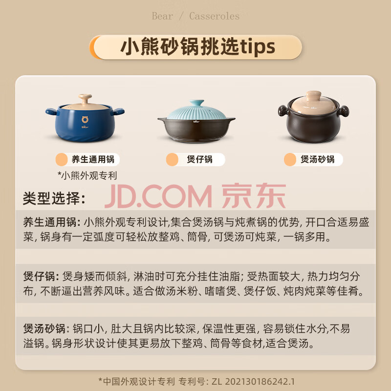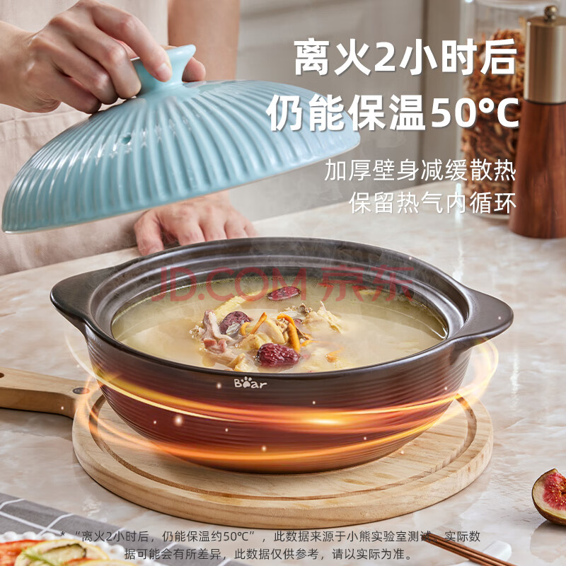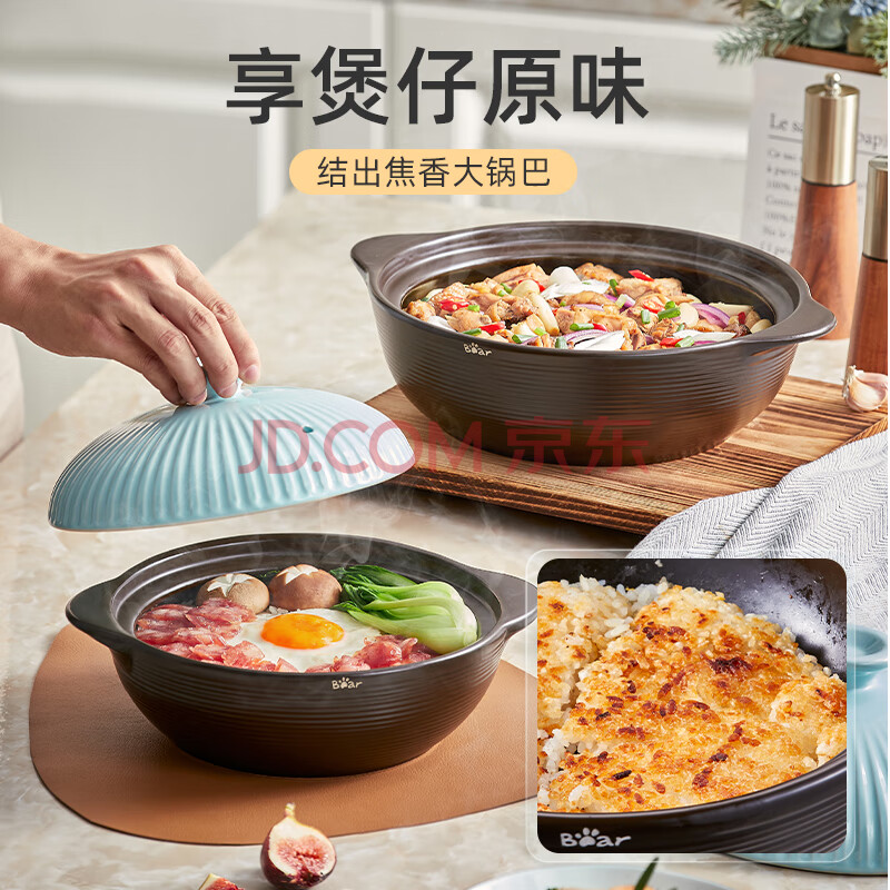 商品相册:小熊(Bear)砂锅 宽口煲仔饭炖锅耐高温不开裂3.2L煲汤鸡公煲陶瓷锅G0054-S03第