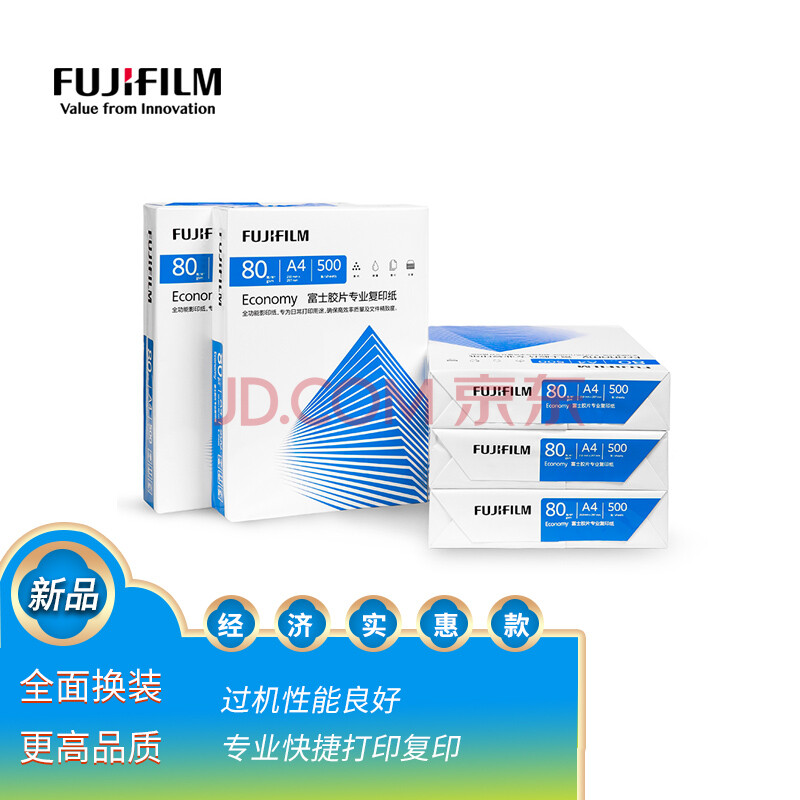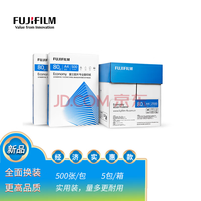 商品相册:富士(FUJIFILM)Economy 专业80g A4复印纸 500张/包 5包/箱(2500张) 打印纸80g a4 整箱第