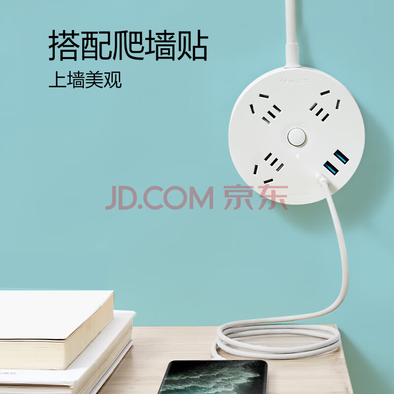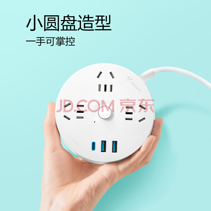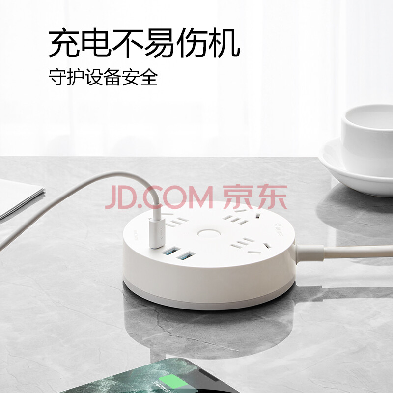 商品相册:公牛(BULL)20W PD苹果快充插座/插线板/插排/排插/桌面充电站宿舍家用拖线板 USB+3孔总控 全长1.8米R203U20第