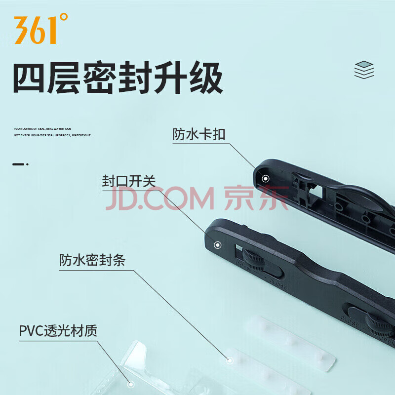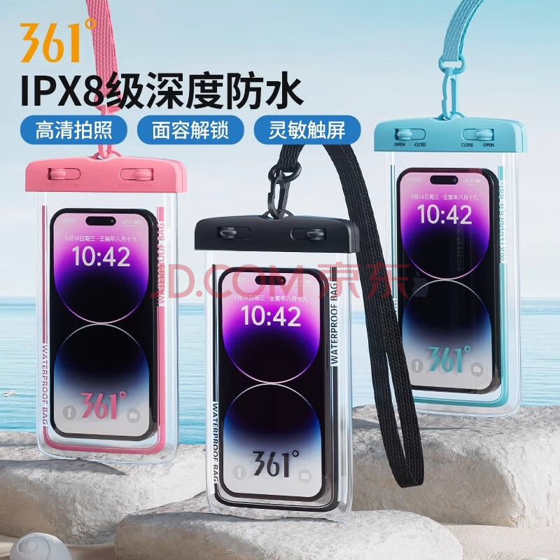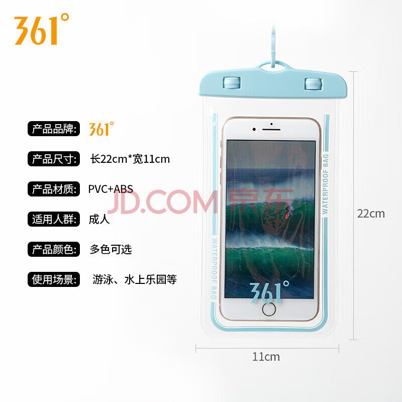 商品相册:361°手机防水袋潜水套漂流触屏水下拍照通用挂绳外卖骑手专用防雨壳第