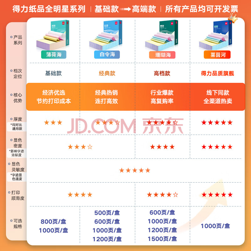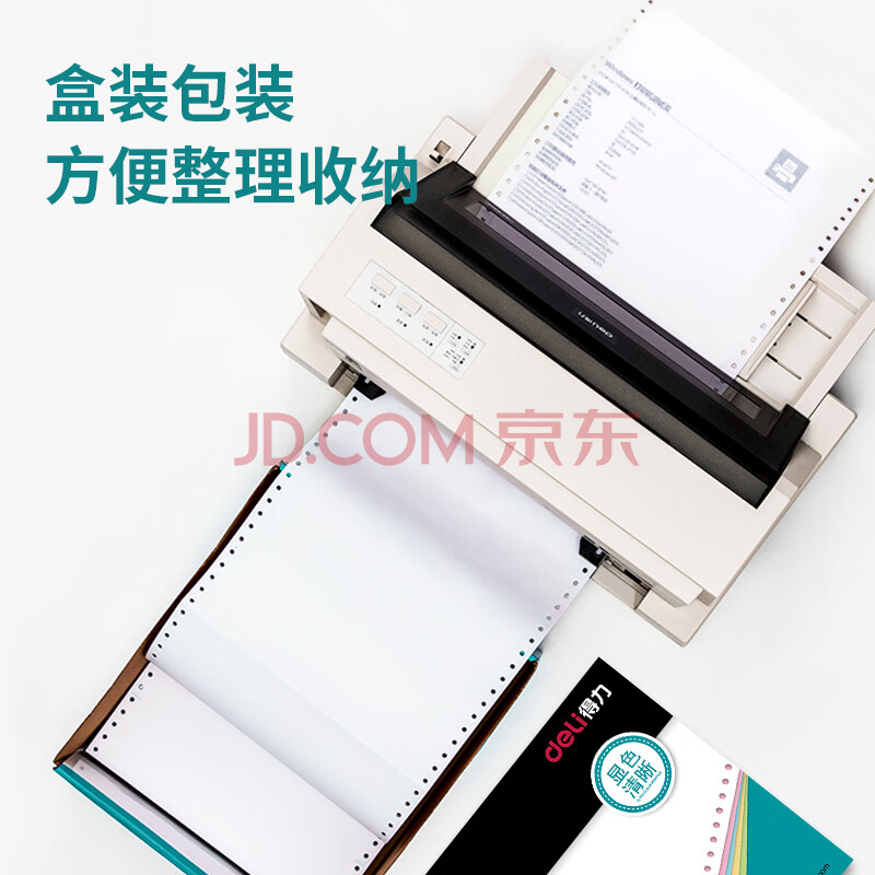 商品相册:得力(deli)【缺页十倍赔】珊瑚海打印纸 四联针式打印纸 不撕边电脑打印纸 白色出库送货单 1000页/箱 S381-4第