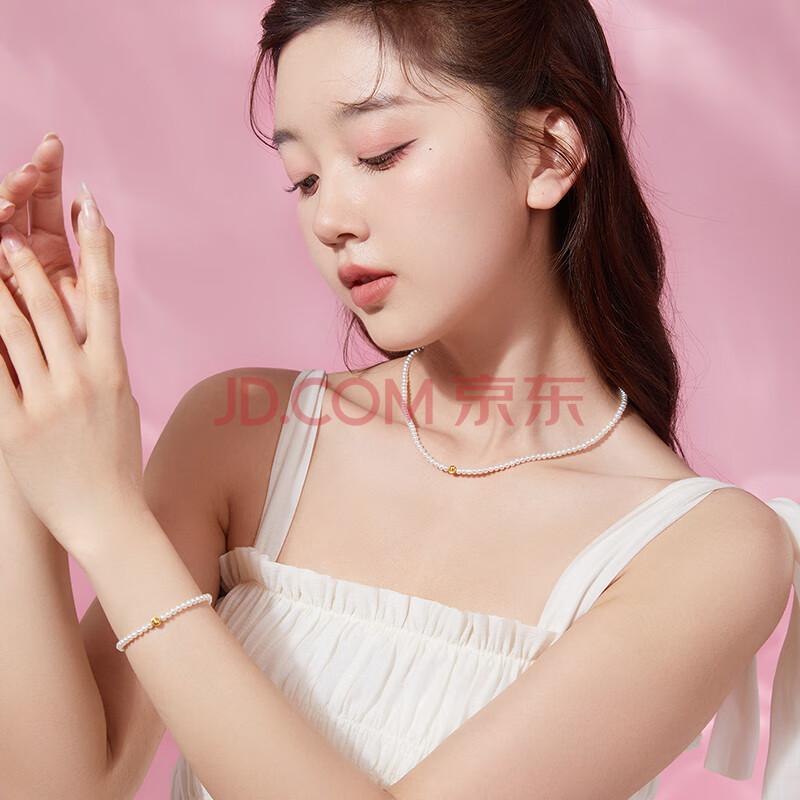 商品相册:周六福黄18K金珍珠项链女年轻款生日礼物 小米珠约3.5mm 40+3cm第