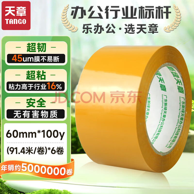 商品相册:天章(TANGO)米黄色胶带60mm*100Y*(91.4米/卷)*6卷高品质胶黄宽胶带封箱车间仓库打包防台风专用第