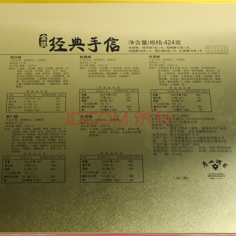 商品相册:广州酒家 金装经典手信礼盒424g 5味广式特产糕点伴手礼零食早餐团购送礼第