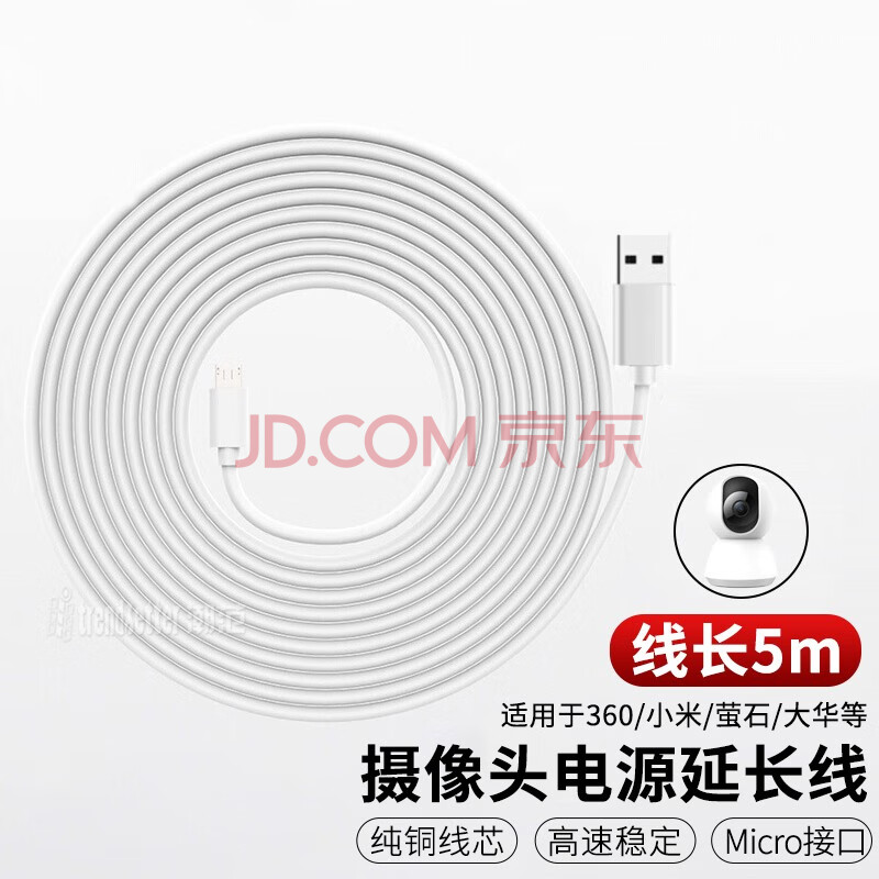 商品相册:trendsetter适用小米监控摄像头电源线5米加长360小白萤石华为乐橙小蚁TP-link普联乔安摄像机电源延长线5M第