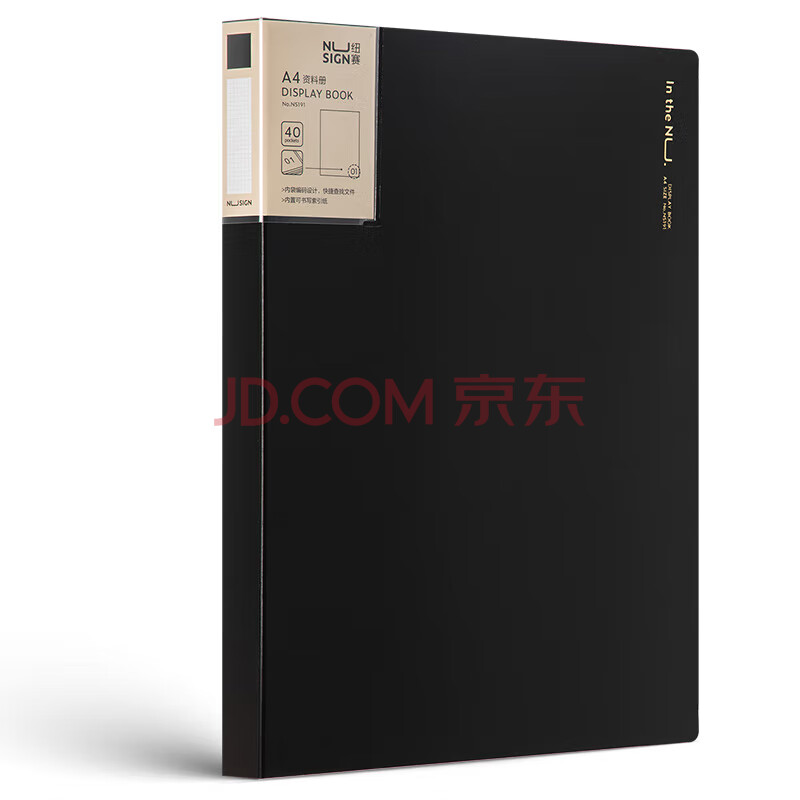 商品相册:得力编码资料册A4/40页 彩色文件收纳册带页码活页插袋文件夹办公学生用品 曜石黑NS191第