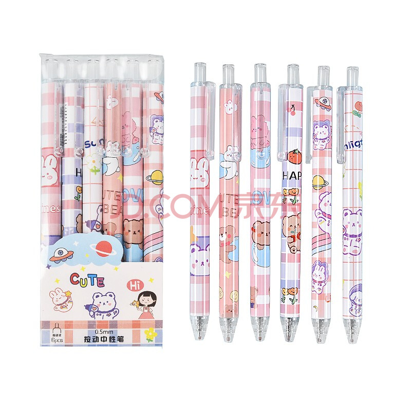 商品相册:誉禾按动中性笔0.5mm黑色速干水笔卡通可爱签字笔学生中高考刷题笔书写套装6支装 2223小米粒第