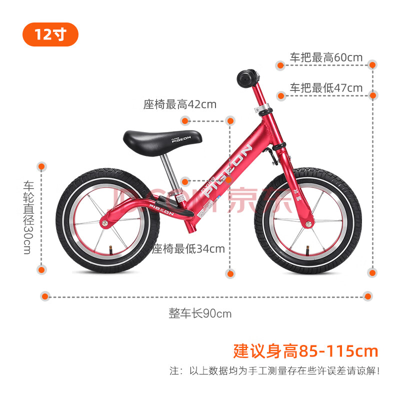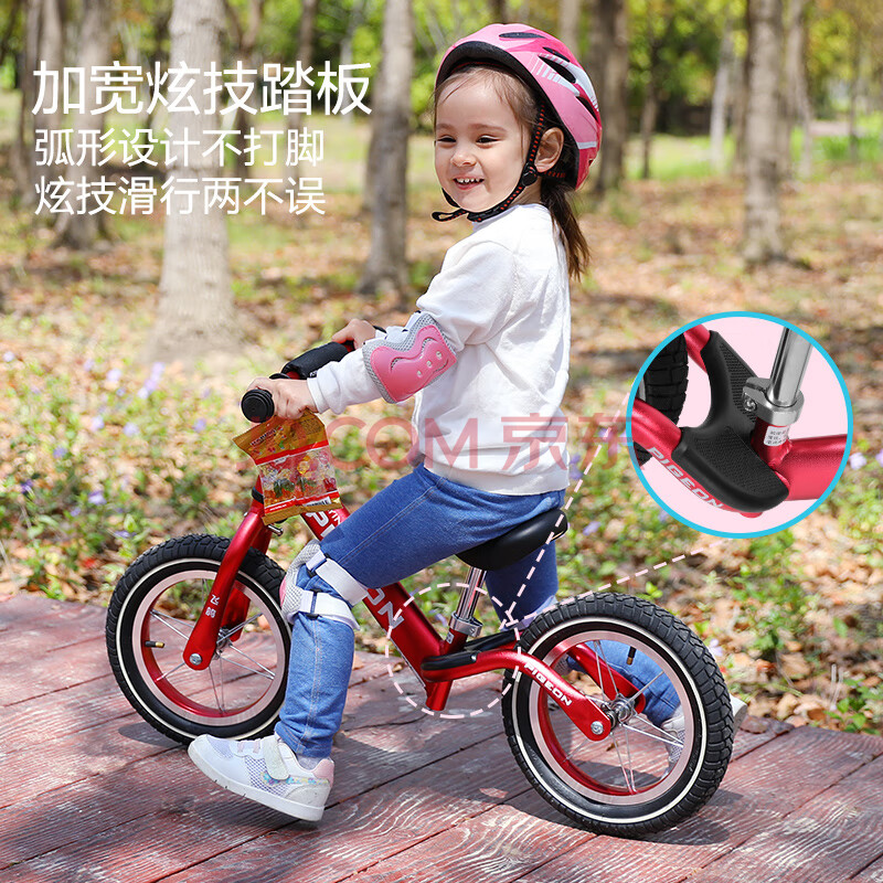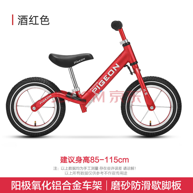 商品相册:飞鸽儿童平衡车自行车滑步车男女滑行车两轮童车学步单车辐条轮酒红色第1张/共7