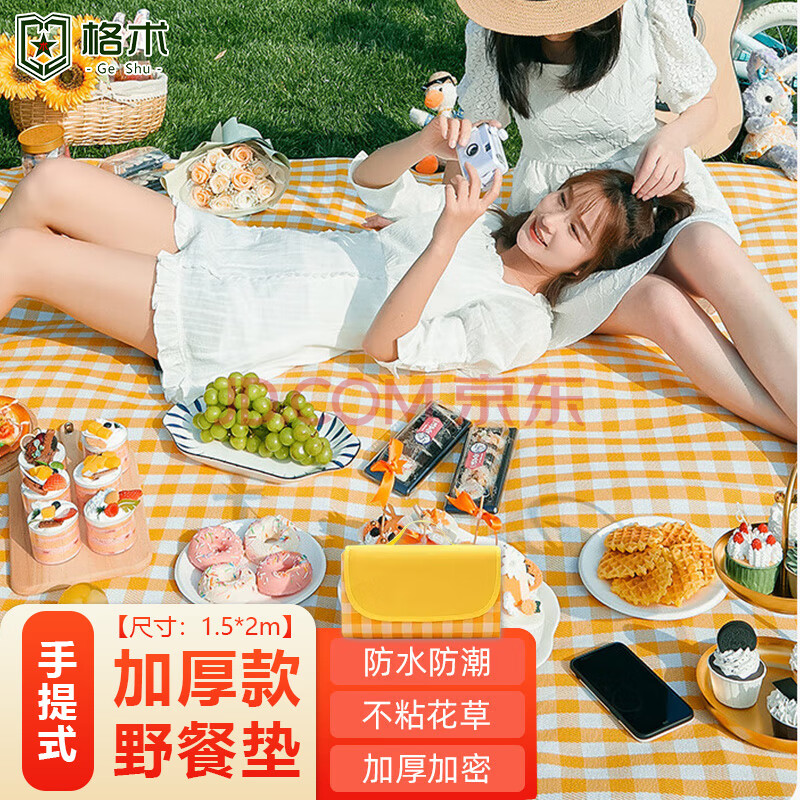 商品相册:格术野餐垫加厚加大防潮露营垫户外野炊地垫可折叠便携小巧帐篷坐垫子第