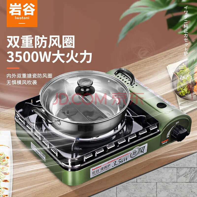 商品相册:岩谷便携卡式炉 户外防风野炊燃气炉 火锅炉具 ZKZ-2F+鸳鸯锅套装第