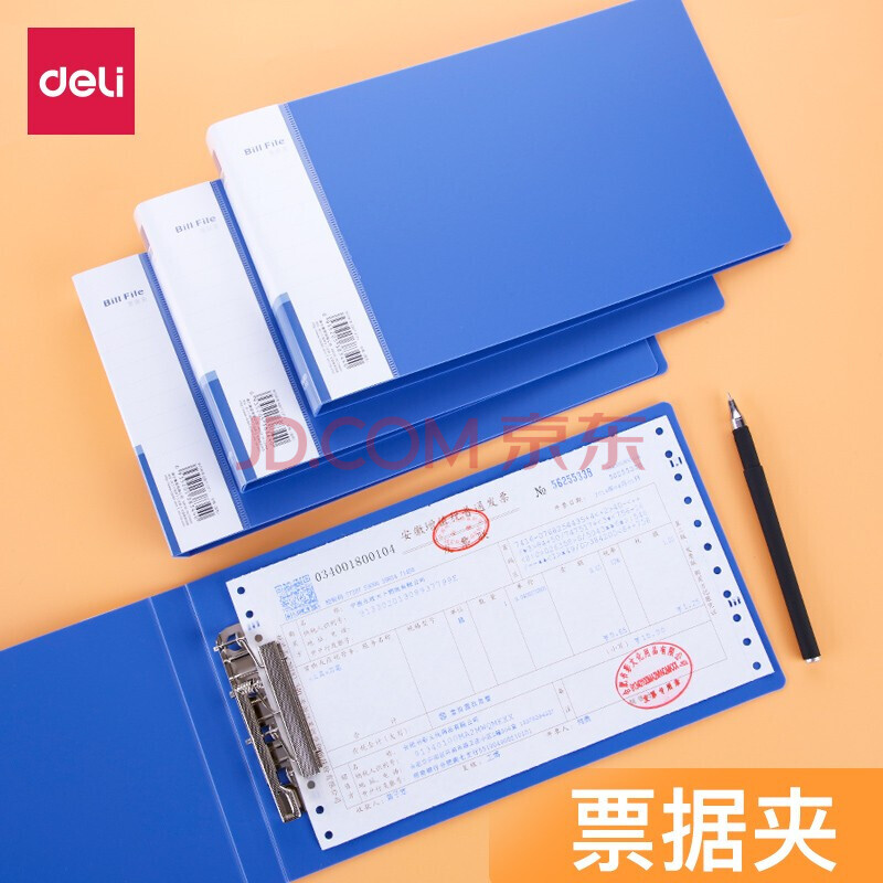 商品相册:得力(deli)发票夹小号 文件夹财务支票收据单据收纳整理分类票据夹 5353 蓝色 6本装第