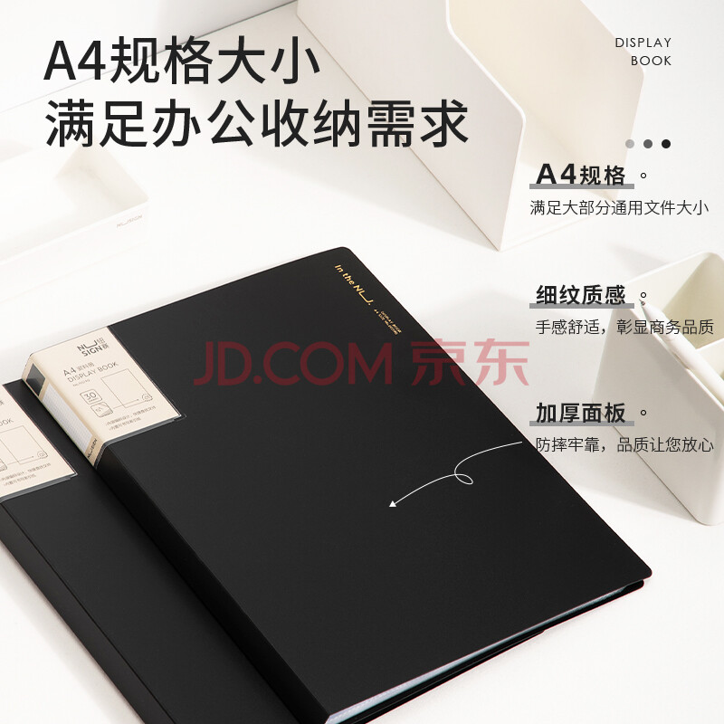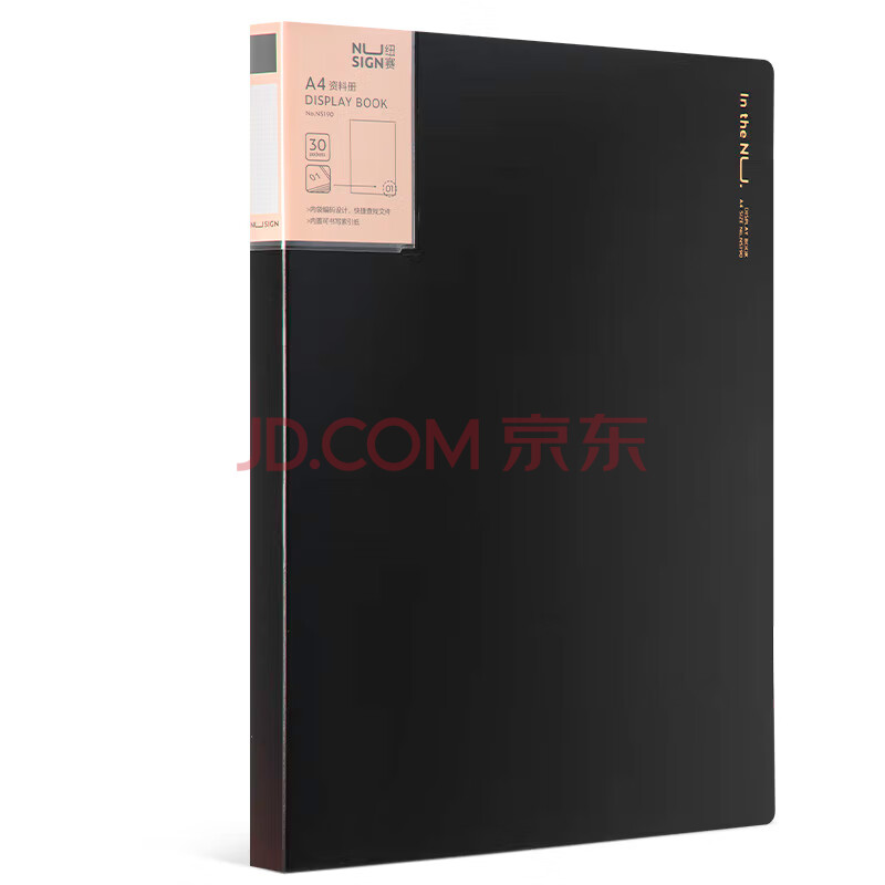 商品相册:得力编码资料册A4/30页 彩色文件收纳册带页码活页插袋文件夹办公学生用品 曜石黑NS190第