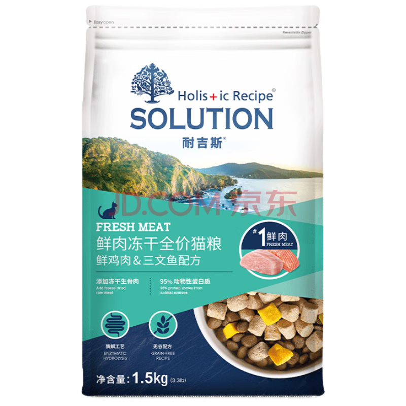 商品相册:耐吉斯冻干生骨肉猫粮酶解鲜肉成猫幼猫无谷低敏鸡肉三文鱼配方1.5kg第