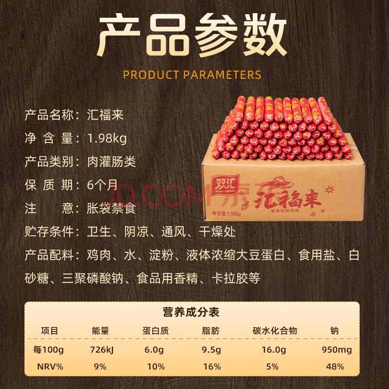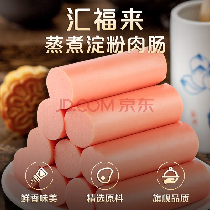 商品相册:双汇火腿肠淀粉肠 汇福来 蒸煮淀粉肉肠 22g*90支 整箱装 烧烤露营第
