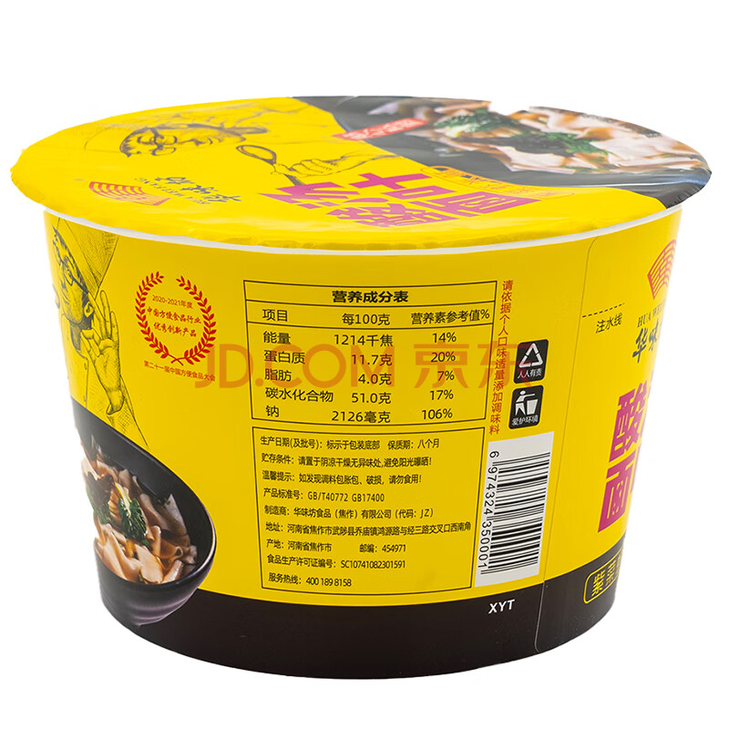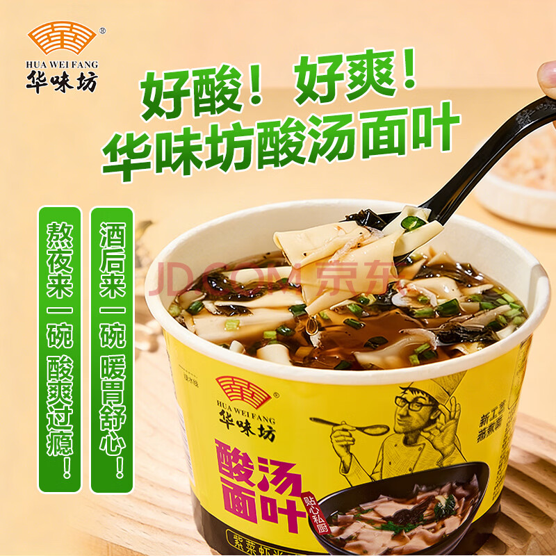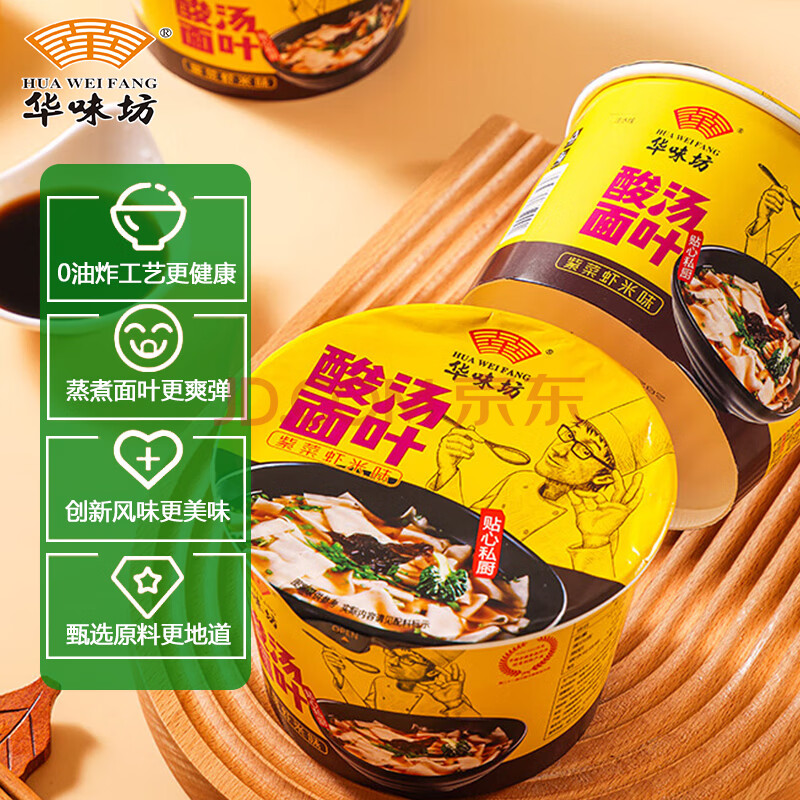 商品相册:HUAWEIFANG华味坊酸汤面叶非油炸方便速食酸辣紫菜虾米110g*12桶方便面送礼第