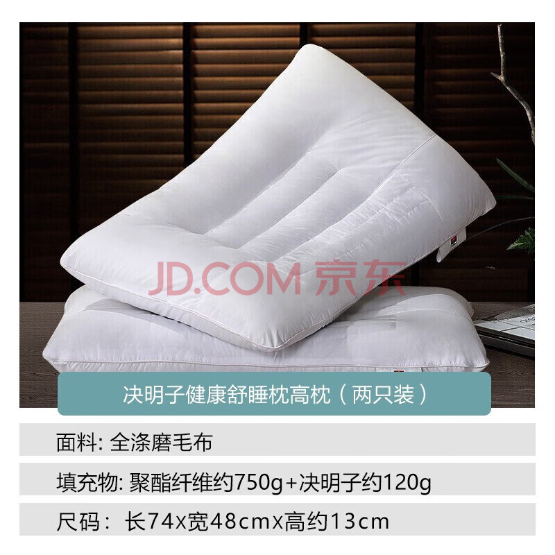 商品相册:富安娜决明子草本枕芯 成人枕头健康舒睡枕芯一对装 高枕 74*48cm 白色第