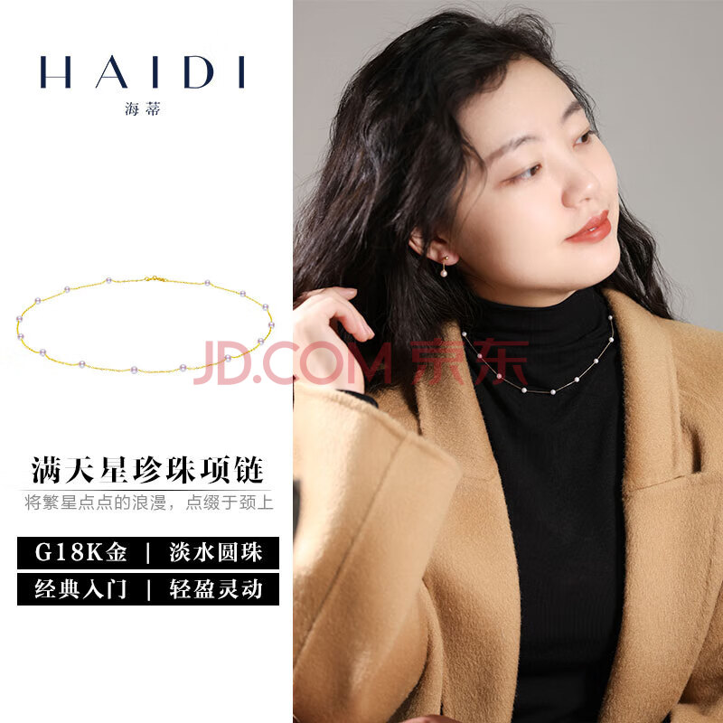 商品相册:海蒂18K金4-4.5mm圆珠满天星淡水珍珠项链女年轻款送女友礼物附证书第