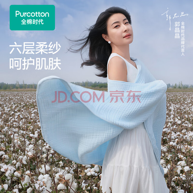 商品相册:全棉时代婴儿浴巾6层水洗纱布浴巾 宝宝纯棉毛巾礼盒 蓝色95*95cm第