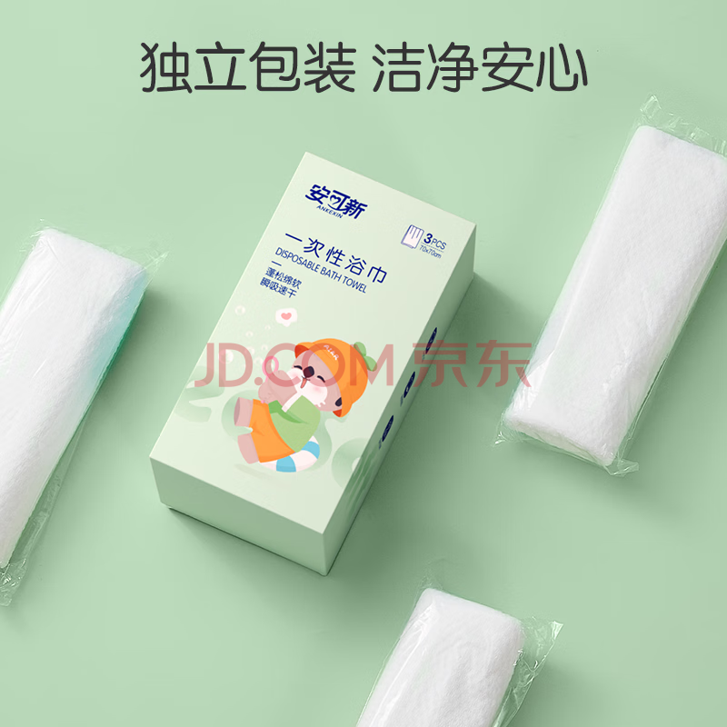 商品相册:安可新【9条装】 婴儿一次性浴巾儿童游泳便携绵柔加厚浴巾第1张/共9
