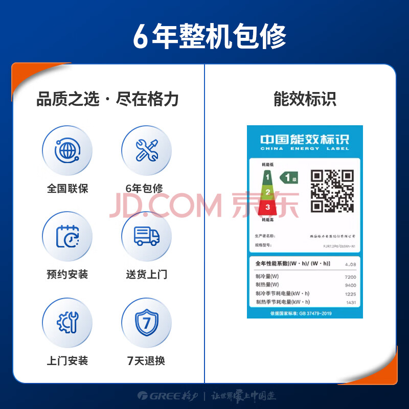 商品相册:格力(GREE)中央空调 FJ风管机一拖一 3匹家用嵌入式空调 一级能效全直流变频冷暖 FJR7.2Pd/Cb3Nh-N1第