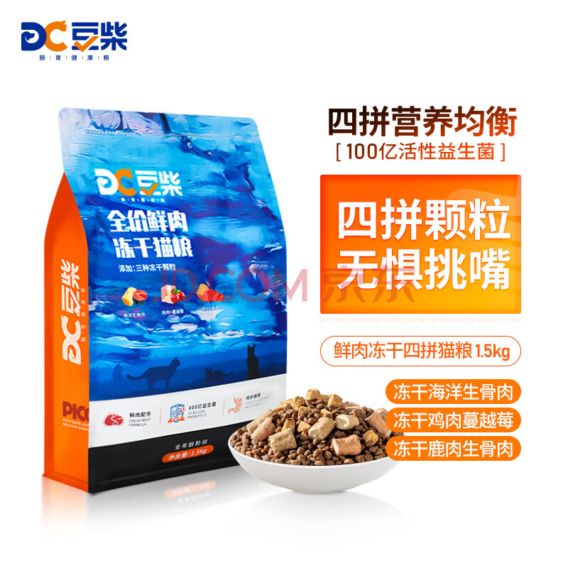 商品相册:豆柴(docile)冻干四拼猫粮无谷冻干粮全阶段全品种幼猫成猫粮通用猫干粮1.5kg第