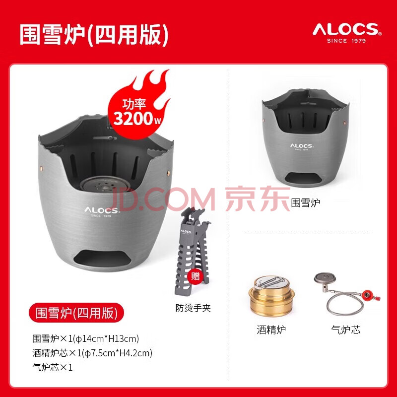 商品相册:爱路客(ALOCS) 户外卡式炉具围雪炉露营酒精炉围炉煮茶炭火炉野外燃气多功能炉第1张/共9