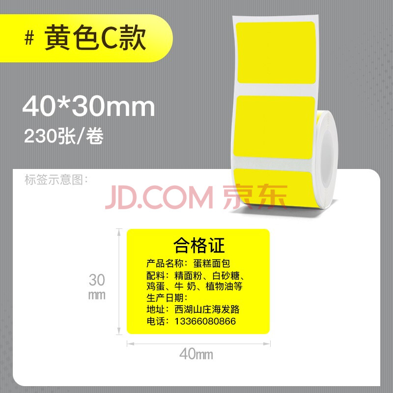商品相册:精臣B1 B21 B203 B3S B31标签打印纸 通讯机房设备空开不干胶贴纸彩色价格标签纸(58)40*30-230张 黄色第
