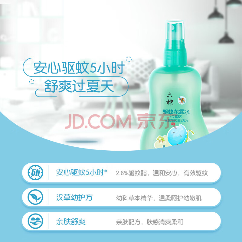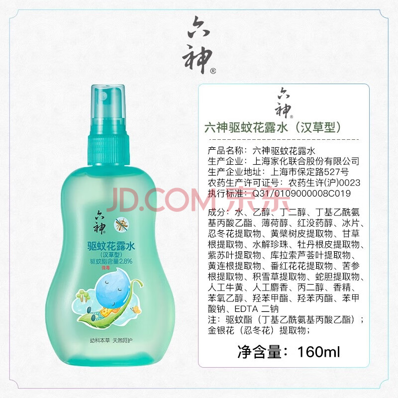 商品相册:六神汉草驱蚊喷雾160ml*2 基孔肯雅热 2.8%驱蚊酯 儿童驱蚊水 花露水第1张/共9