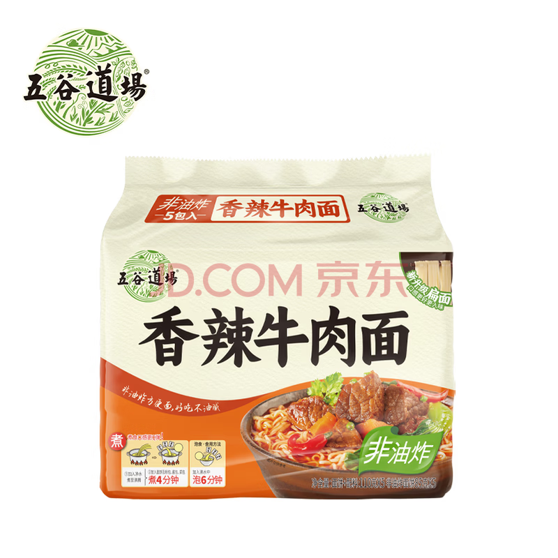 商品相册:五谷道場非油炸方便面 陆虎同款 香辣牛肉面五连包110g*5袋 免煮泡面第