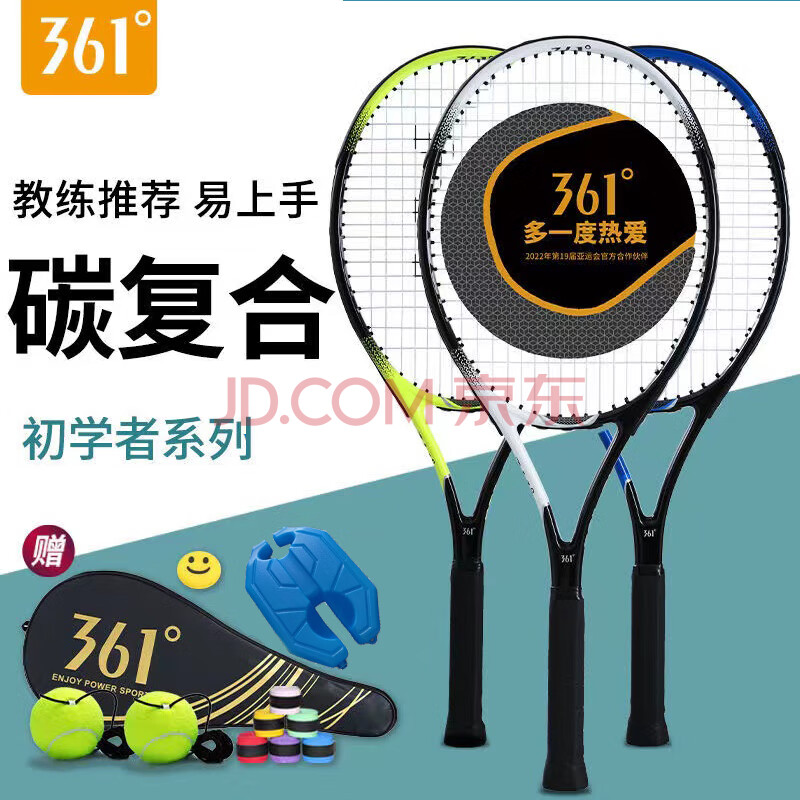 商品相册:361°网球拍碳素复合进阶单人网球拍带线训练器套餐 橙色第1张/共4