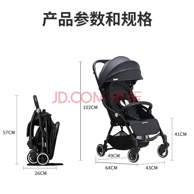商品相册:汉弥尔敦 婴儿推车可坐可躺轻便折叠可登机宝宝手推婴儿车 X1plus夜鹰黑第