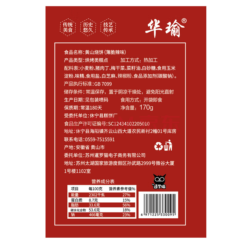 商品相册:华瑜薄酥脆烧饼黄山特产解馋小零食梅干菜扣肉小酥饼辣味170g第