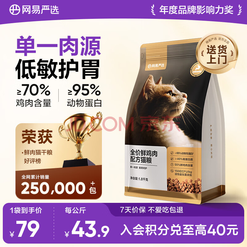 商品相册:网易严选全价鲜鸡肉猫粮 成幼猫粮单一肉源无谷益生菌低敏护肠胃增肌1.8kg第