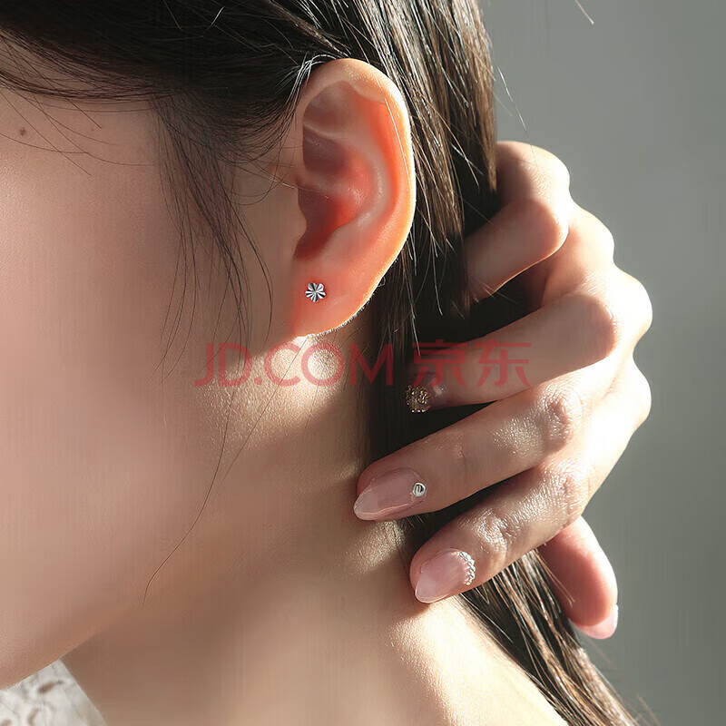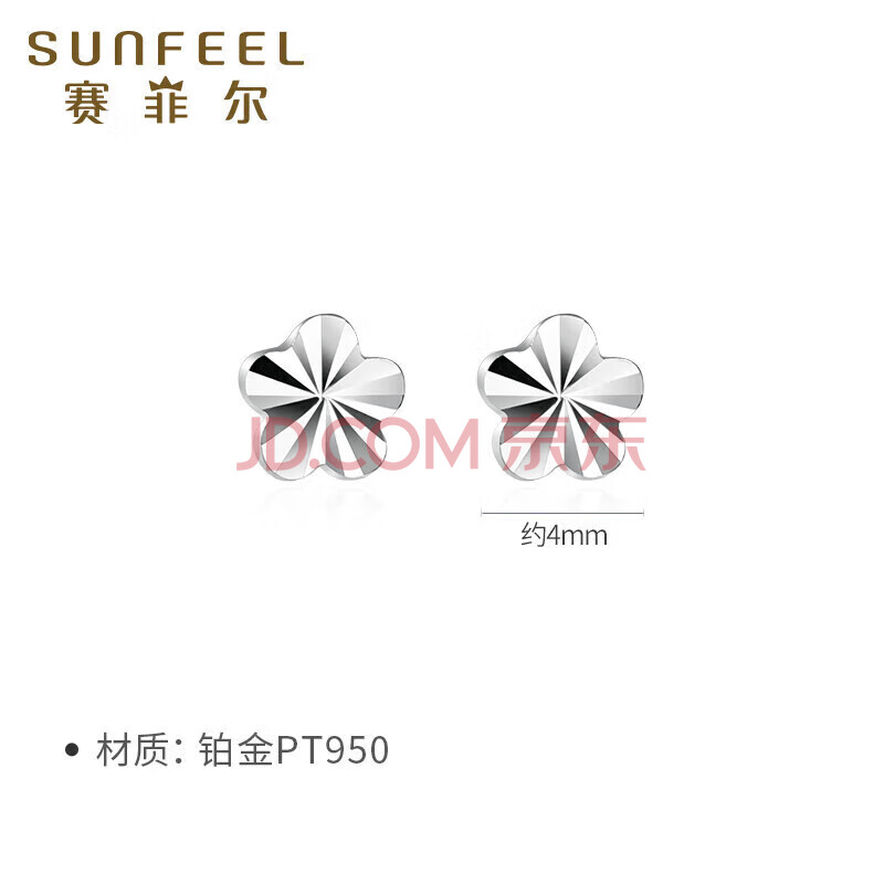 商品相册:赛菲尔生日礼物PT950铂金耳钉女款白金小花耳饰简约小巧 一对 约0.6克第