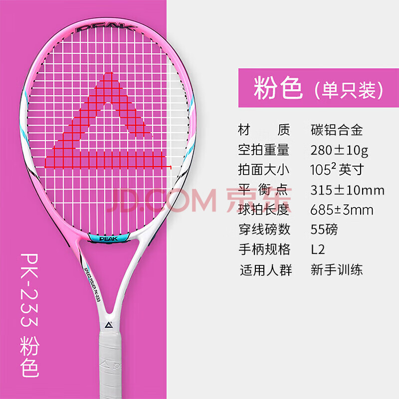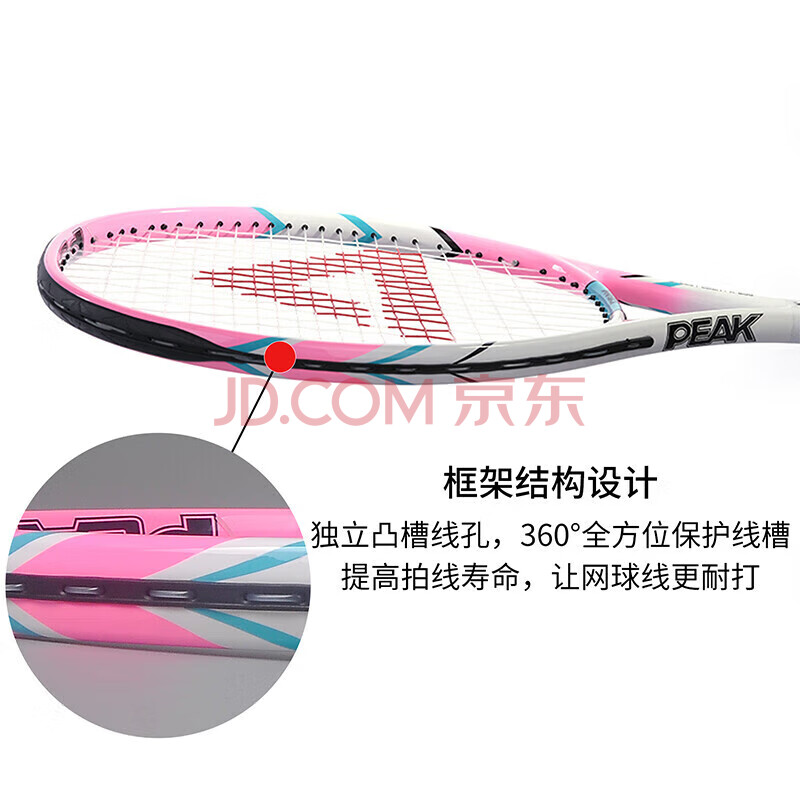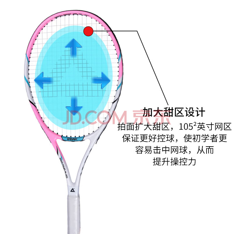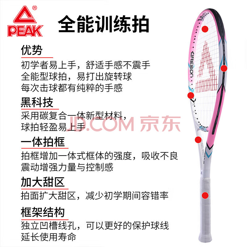 商品相册:匹克网球拍男女初学者专业碳素复合单只网球带绳回弹训练器套装 粉白第