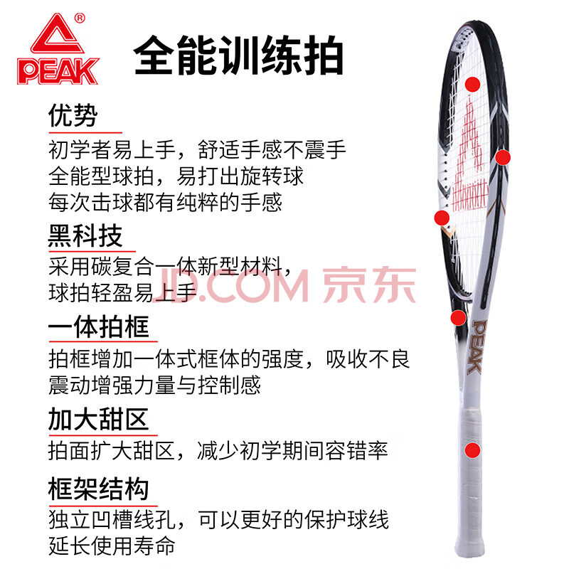 商品相册:匹克网球拍碳铝合金回弹训练器专业带绳回弹初学者单拍 黑白第
