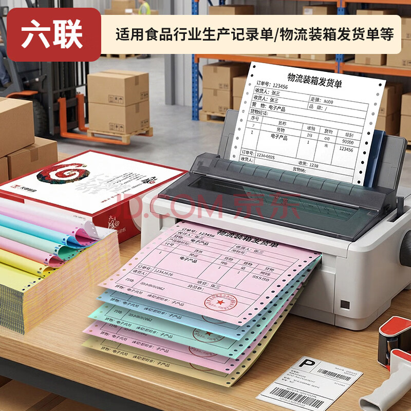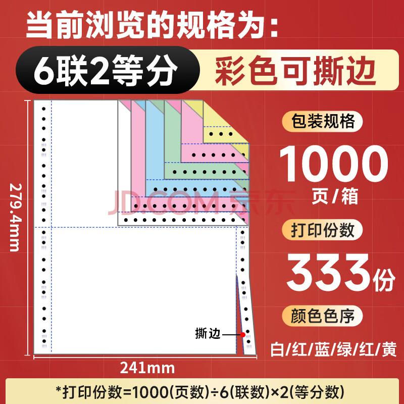 商品相册:天章 (TANGO)【缺页十倍赔】天章风六联二等分撕边针式电脑打印纸送货单1000页241-6-1/2S(白红蓝绿红黄)可定制第