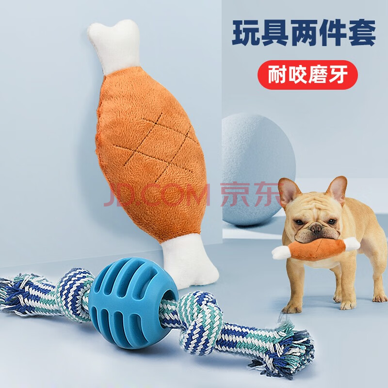 商品相册:加仕高宠物狗玩具狗狗金毛泰迪互动磨牙解闷耐咬毛绒发声 绳结2件套第