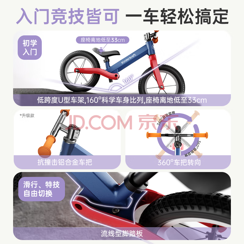 商品相册:KinderKraftkk平衡车儿童滑步无脚踏自行车2-6岁升级减震生日礼物竞赛炫酷黑第