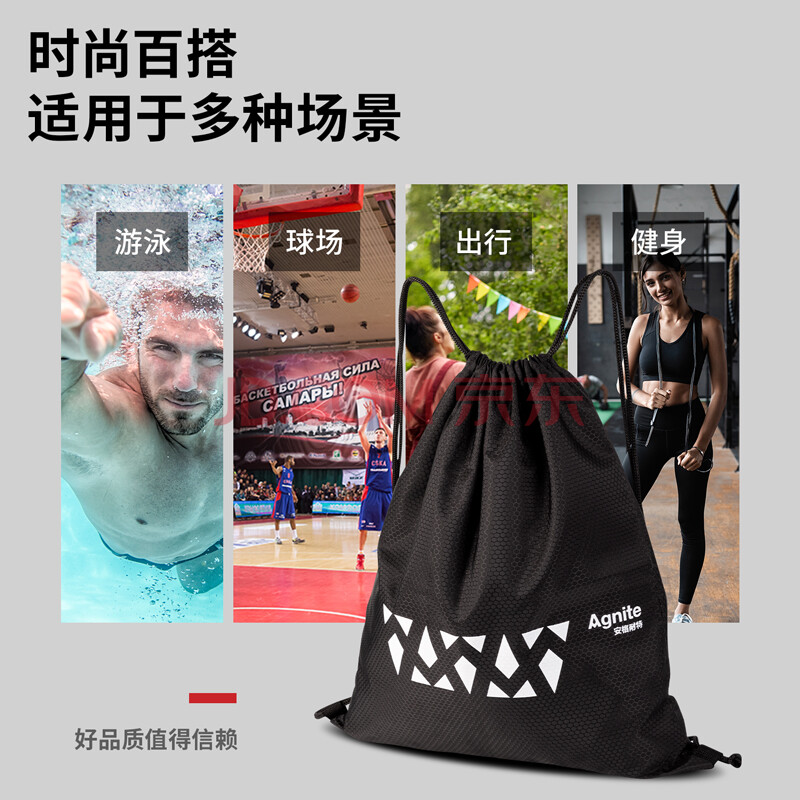 商品相册:安格耐特(Agnite)束口包男女运动训练健身包双肩背包排球足球包收纳袋黑第