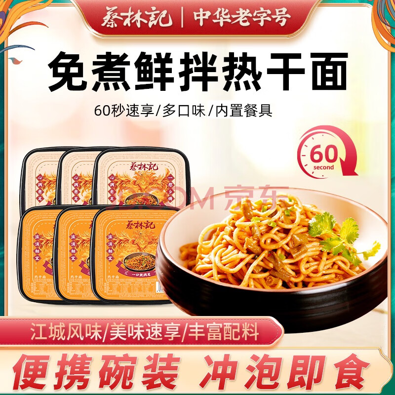商品相册:蔡林记冲泡免煮热干面255g*6盒早餐湖北特产非油炸即食鲜面方便面多口味第