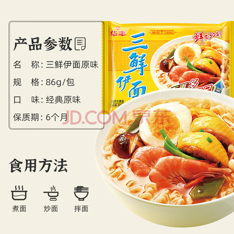 商品相册:华丰方便面三鲜伊面整箱装泡面早餐速食休闲零食品 原味24袋*86g第