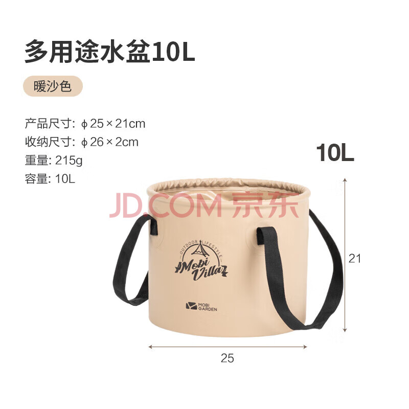商品相册:牧高笛(MOBIGARDEN) 可折叠圆形水桶 户外露营便携野餐储水桶10L NX21674001 暖沙色第