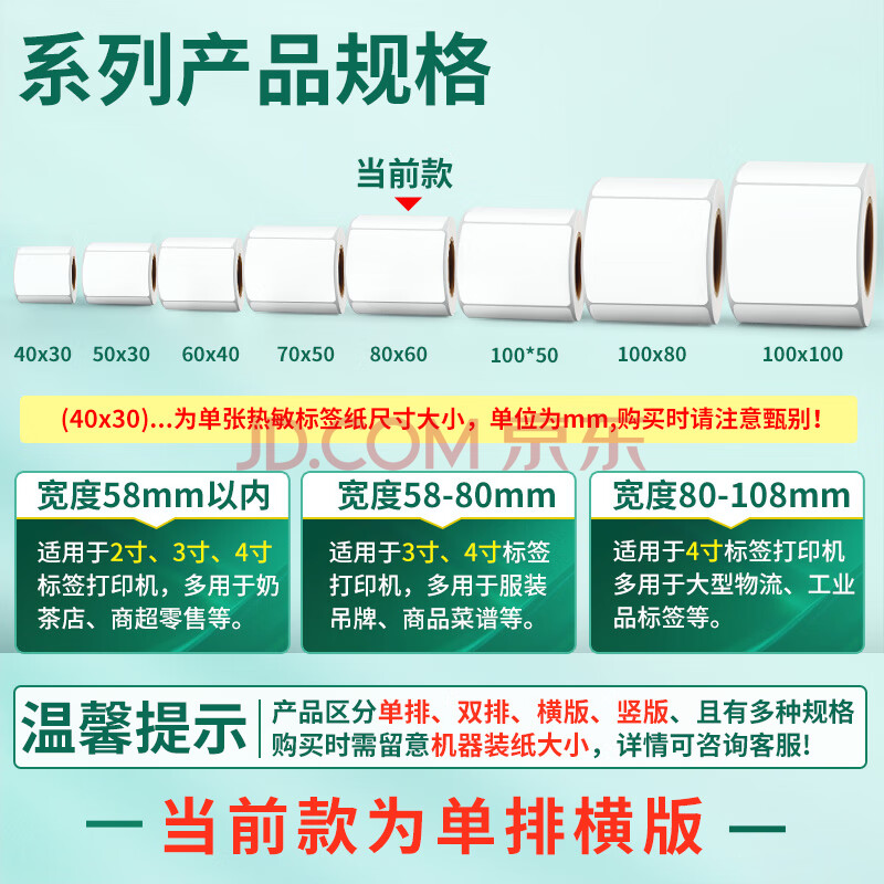 商品相册:天章 (TANGO)新绿天章80x60mm 500张*1卷 五防热敏合成标签打印纸 快递面单不干胶打印纸 物流材料条码标签纸第1张/共7