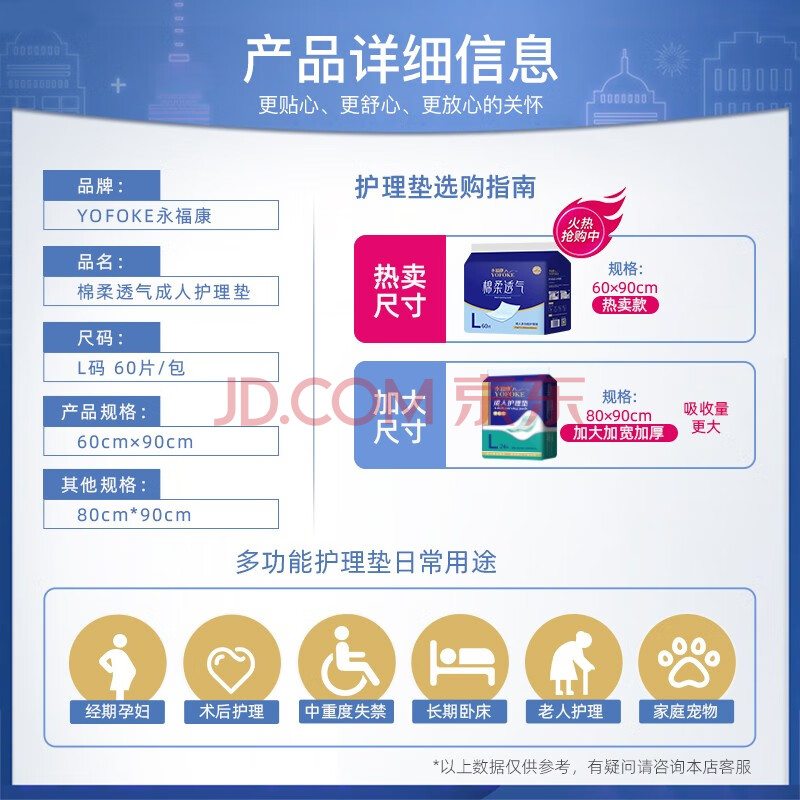 商品相册:永福康成人护理垫L60片(60*90cm)婴儿老人一次性加大隔尿垫产褥垫第