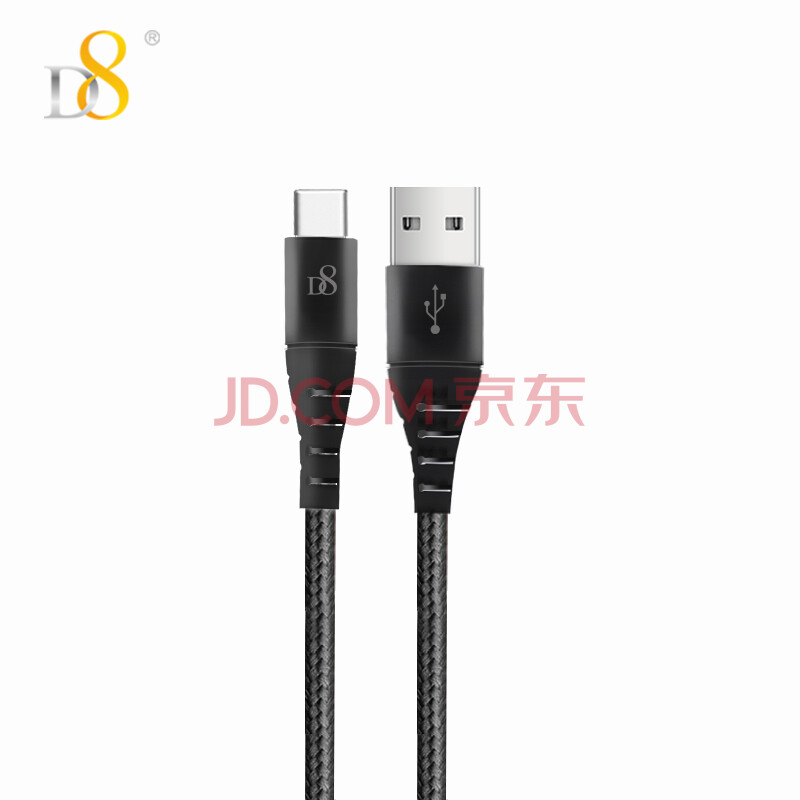 商品相册:D8 Type-C数据线安卓手机充电线快充USB转接头充电器电源线支持华为P10/Mate9/10/20荣耀8小米1米 黑色第